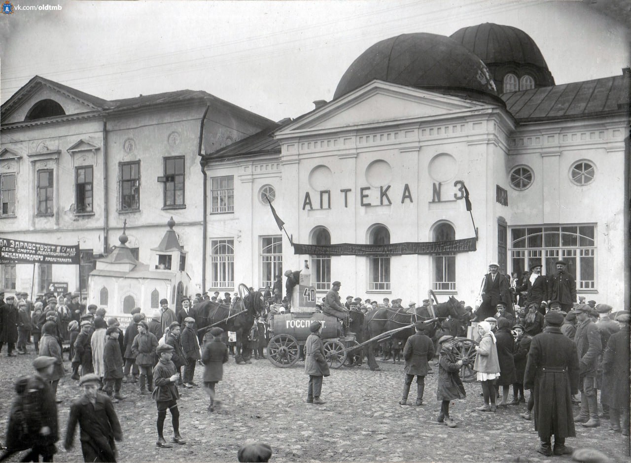 Аптека в здании Лазаревской церкви на улице Советской (в 1918 -1938 годах улица Трудовая). Фото 1930-х гг.
