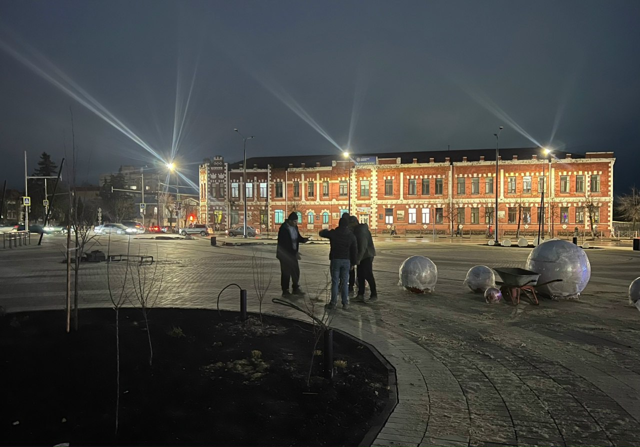 — Подрядчик обещает к концу недели включить на объекте освещение, тогда центральная площадь города уже будет иметь совсем другой вид. Скоро здесь будут установлены световые арки и уличный светодиодный экран, — рассказал Евгений Зименко.