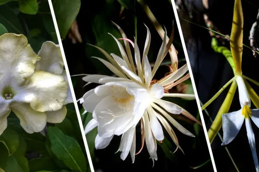 Эти растения, цветущие под покровом ночи, очень часто обладают яркими, чаще всего белыми или светлыми цветами, а также интенсивными ароматами, чтобы привлечь своих опылителей даже в условиях низкой освещенности.