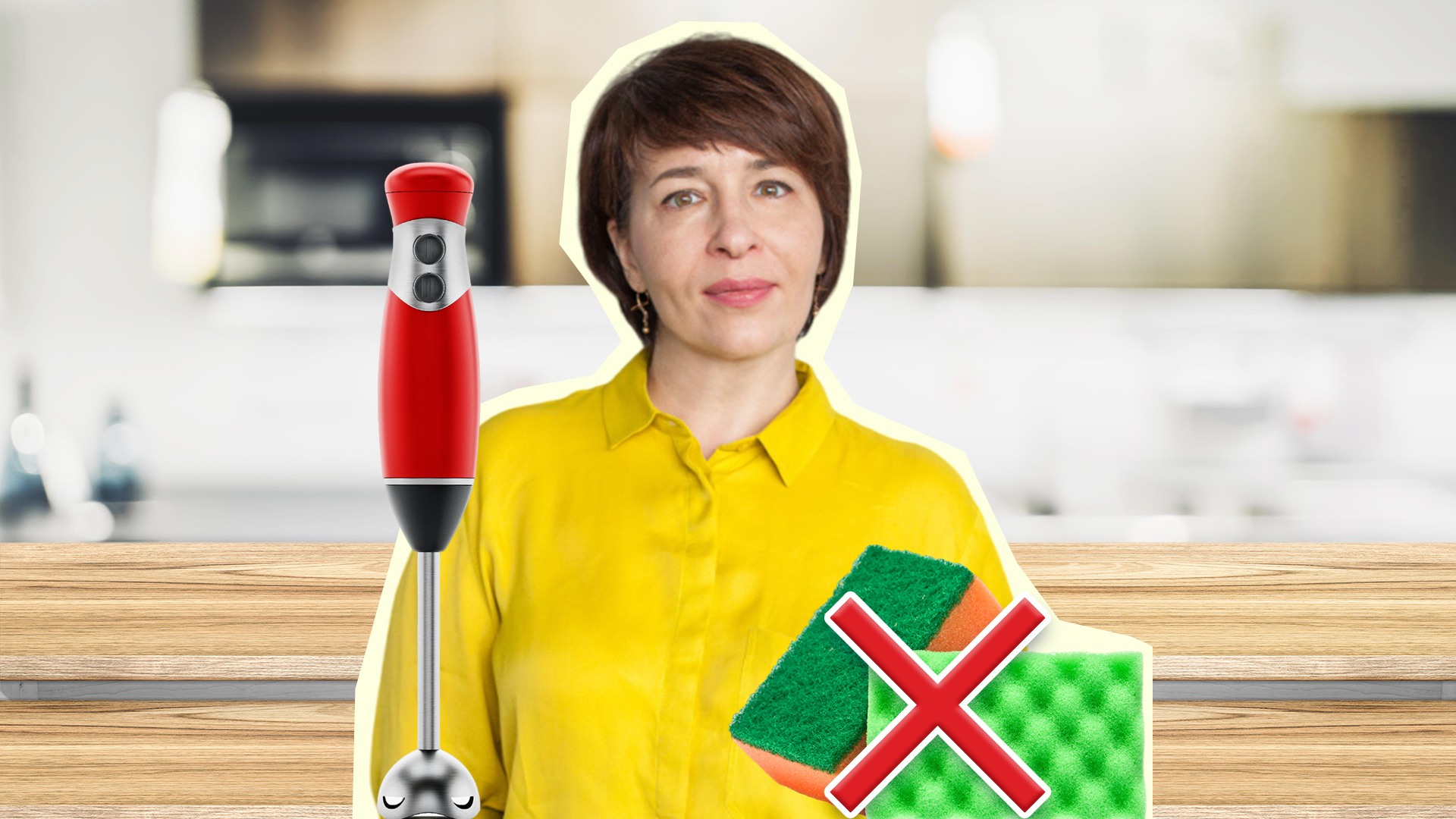 Согласитесь, что мыть насадку погружного блендера не очень-то удобно. Часто к ней прилипают мелкие частички пищи, подобраться к которым с помощью губки не выходит. Тогда на помощь придет эта хитрость.