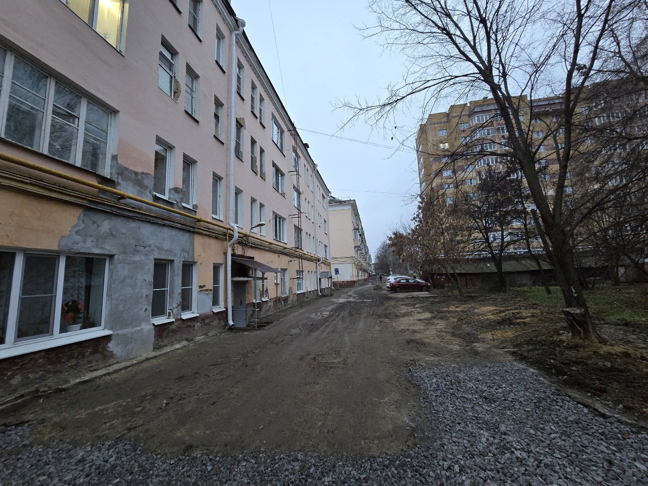 Теплотрасса вдоль четырёх домов по Интернациональной была передана в городскую собственность летом текущего года. Сильно изношенные сети отопления и горячего водоснабжения заменили. Однако из-за неблагоприятных погодных условий восстановление благоустройства заняло больше времени. Сейчас работы возобновились. Подрядчик разровнял грунт и завершает щебенение.