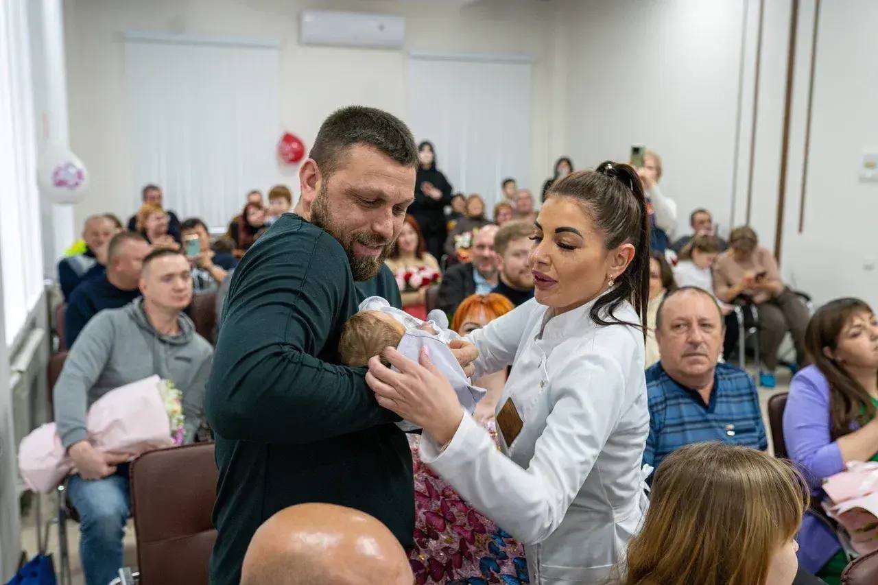 Каждый год накануне Дня матери в торжественной и особой душевной обстановке проходит выписка новорожденных из акушерского стационара городской больницы имени Архиепископа Луки. Сегодня восемь малышей впервые увидели своих пап, братиков и сестренок, бабушек и дедушек. Им вручил подарки и первый важный документ в их жизни — свидетельство о рождении.