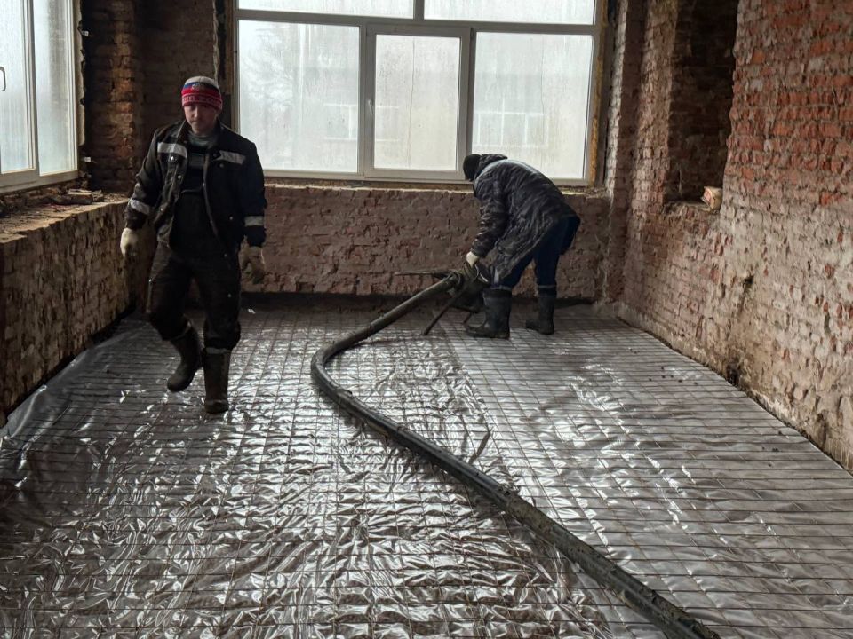 Дошкольное учреждение капитально ремонтируют по программе "Поддержка семьи" нацпроекта "Семья". Сейчас подрядчик продолжает кровельные работы. Уже смонтированы выходы с подготовкой под установку дверей. На втором этаже все готово к проведению холодной стяжки полов. На объект завезли радиаторы. Их установят на следующей неделе. Присутствует вся необходимая техника и оборудование.