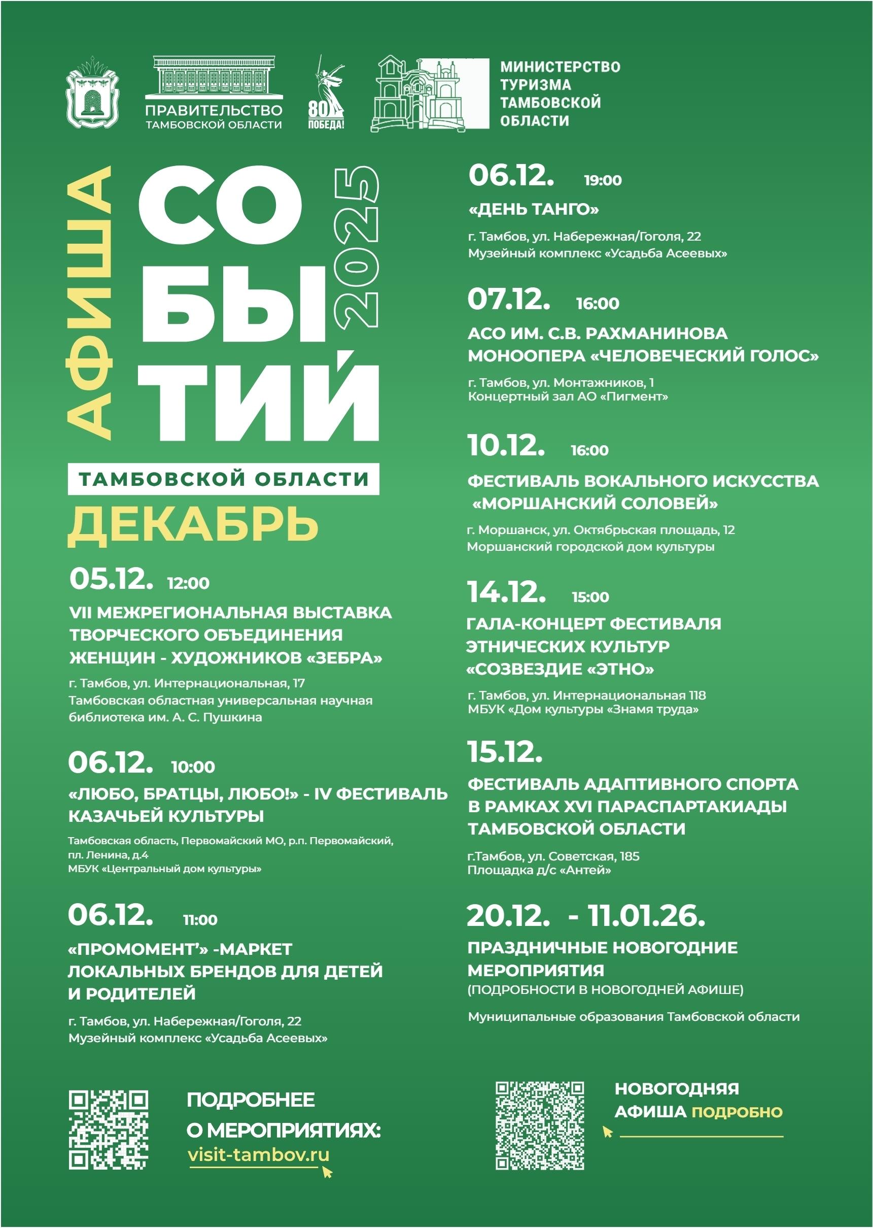 Тамбовское Минтуризма опубликовало афишу мероприятия на декабрь