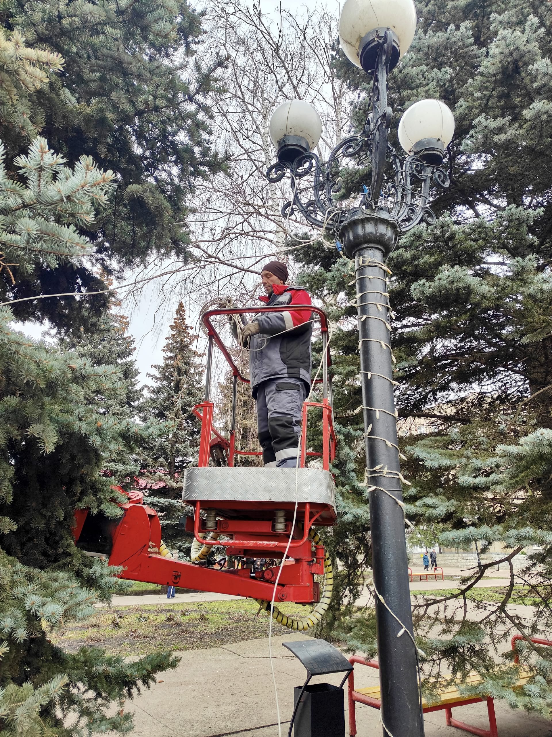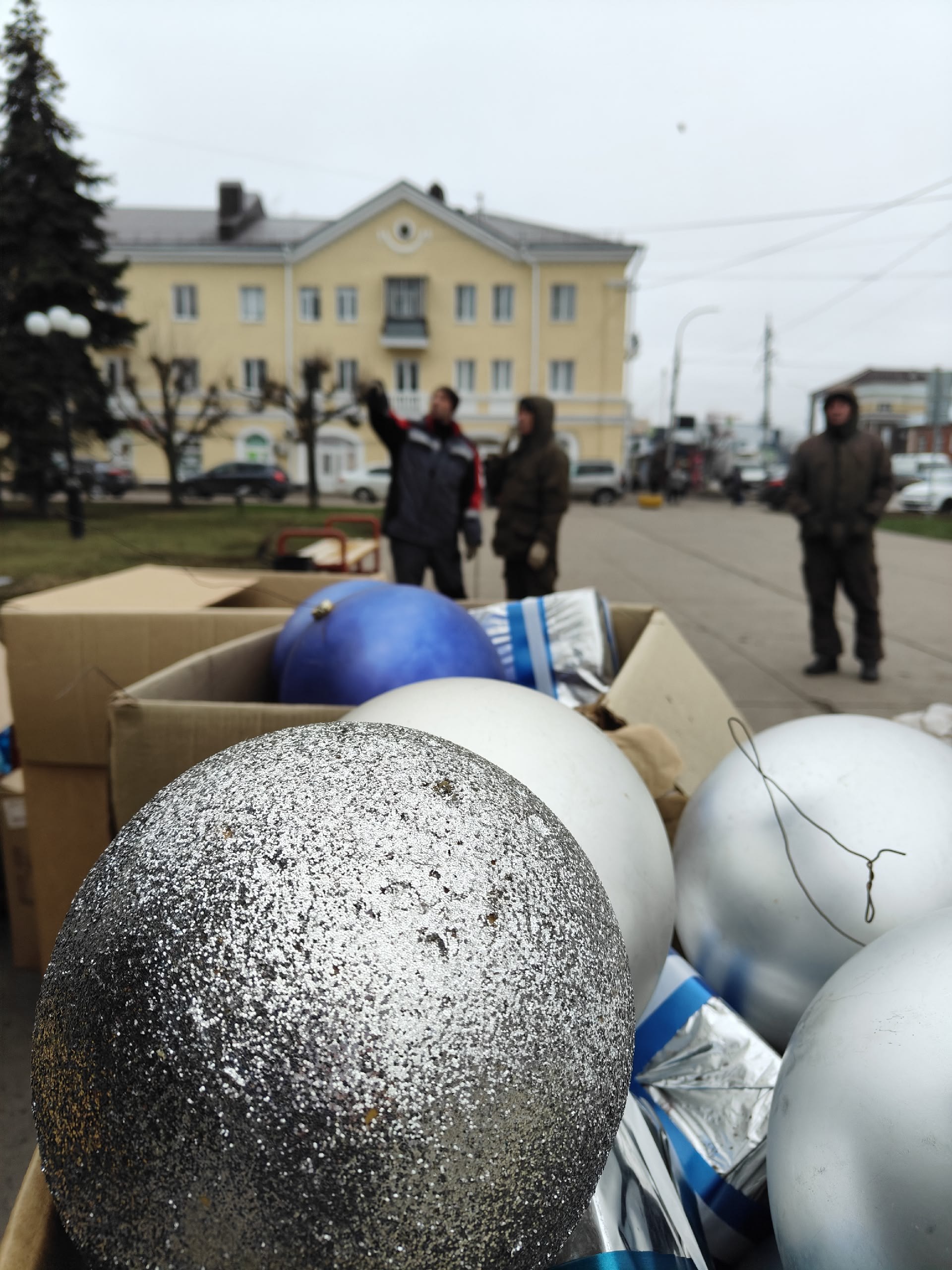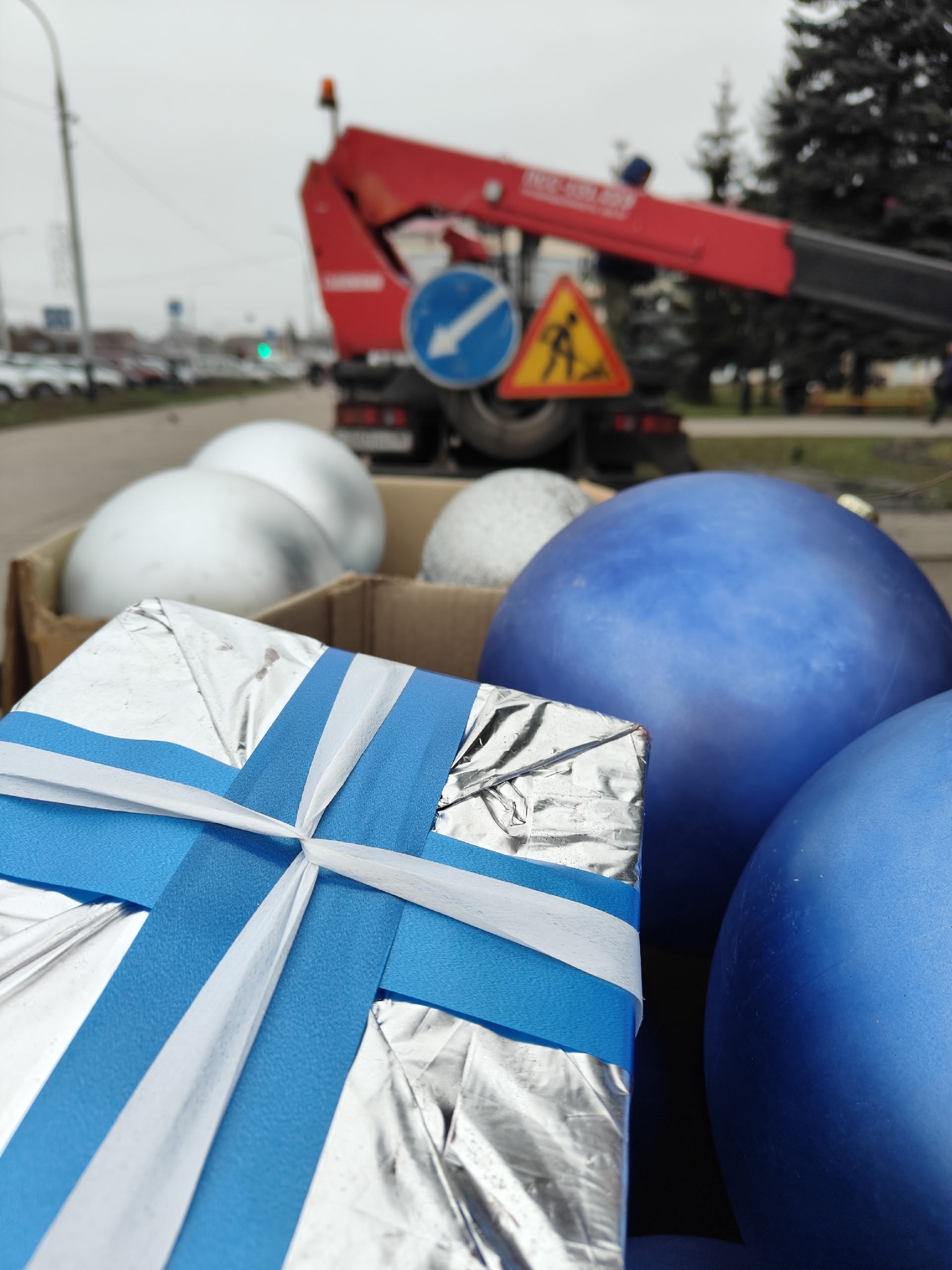 В Тамбове продолжаются работы по праздничному оформлению городских пространств. Уже более половины скверов в городе украшено главным символом Нового года — искусственными елками. Сегодня зеленую красавицу наряжали в сквере на улице Гастеллло, 32.