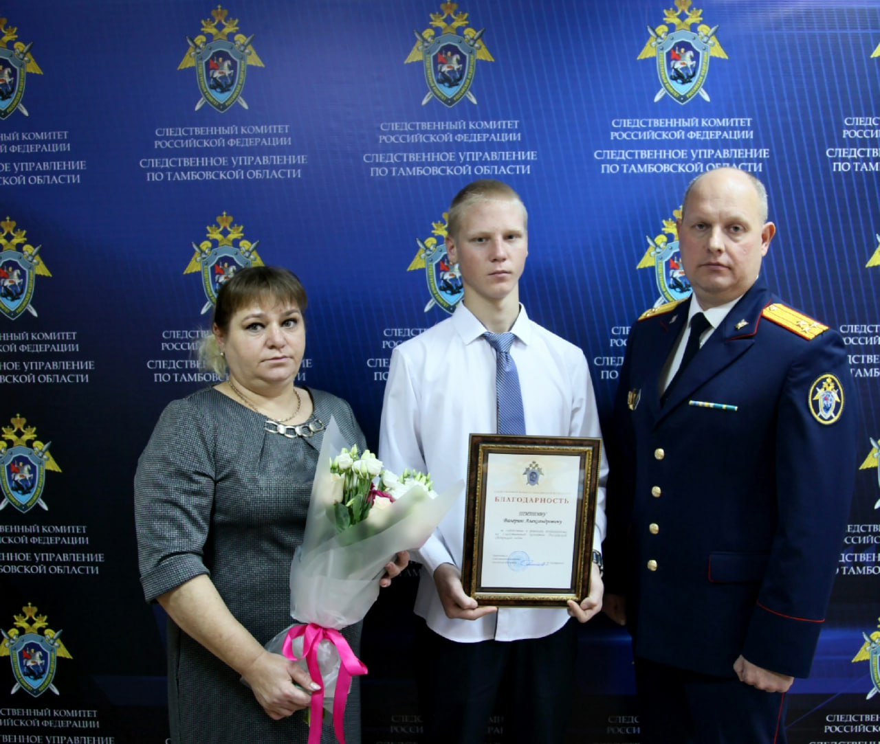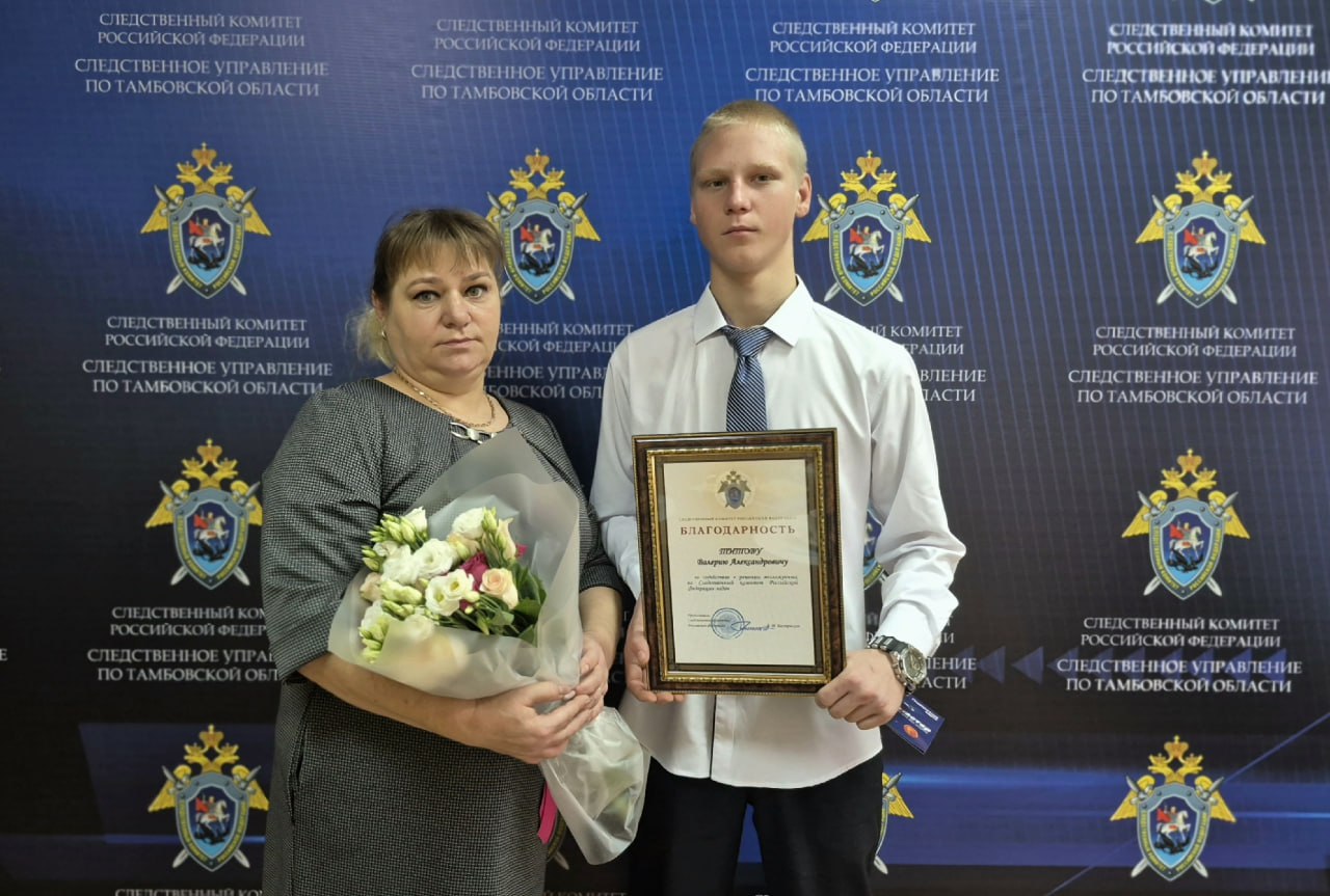 Благодарность Следственного комитета России за содействие в решении возложенных на ведомство задач и памятный подарок Валерию Титову вручил и.о. руководителя СУ СК РФ по Тамбовской области Андрей Чапанов. Отдельно поблагодарили маму юноши за воспитание настоящего Героя.