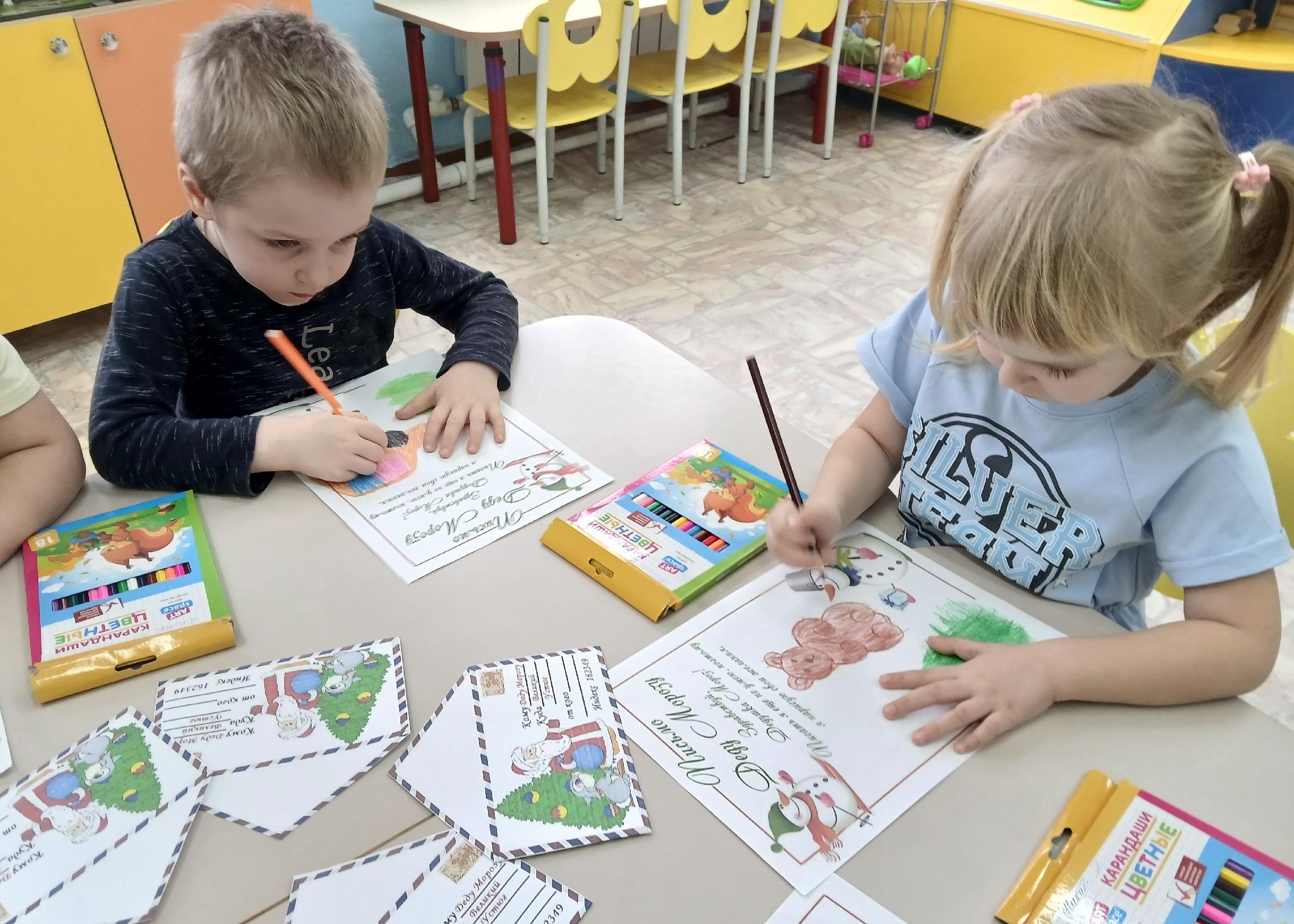 В группах творческая суета: дети старательно выводят буквы и оформляют свои послания блестками и наклейками. Те, кто писать еще не умеет, просто рисуют то, о чем мечтают - куклы, машинки, поезда, поход в цирк и отдых на море. Каждый ребенок вкладывает в свое письмо частичку души и веру в чудо.