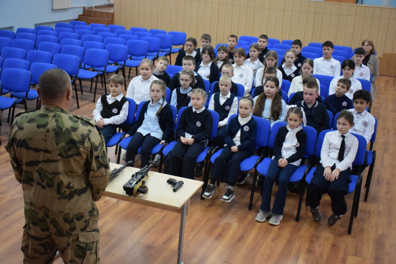 Так, в школе №35 сегодня было особенно оживлённо. Урок мужества для третьеклассников и шестиклассников провёл непростой учитель. К ним в гости пришёл действующий участник СВО.