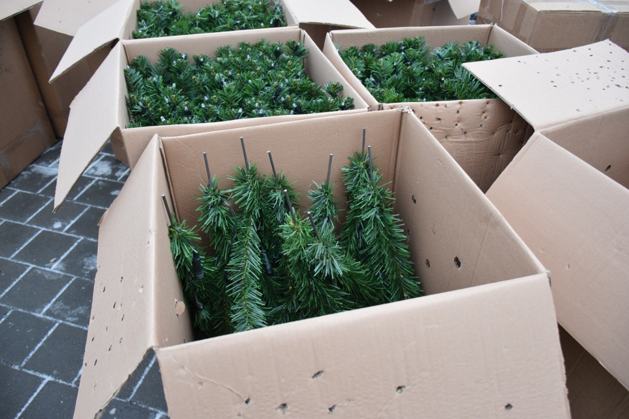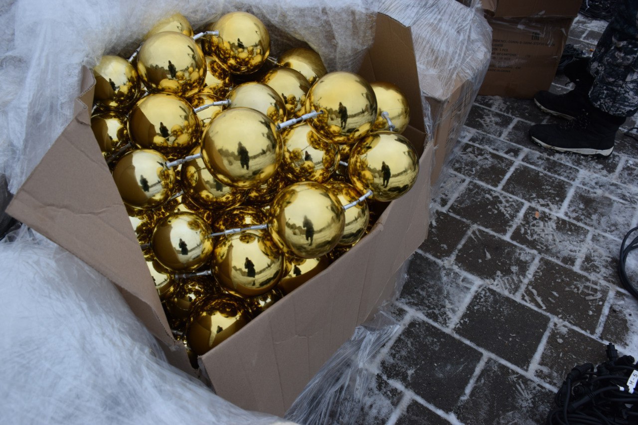 Высота новой искусственной ели — 12 метров, а со звездой — 14. Рабочие завершают монтаж каркаса, а затем приступят к декорированию ветками. Всего будет 20 ярусов. Каждая ветка сразу обвита светодиодами.