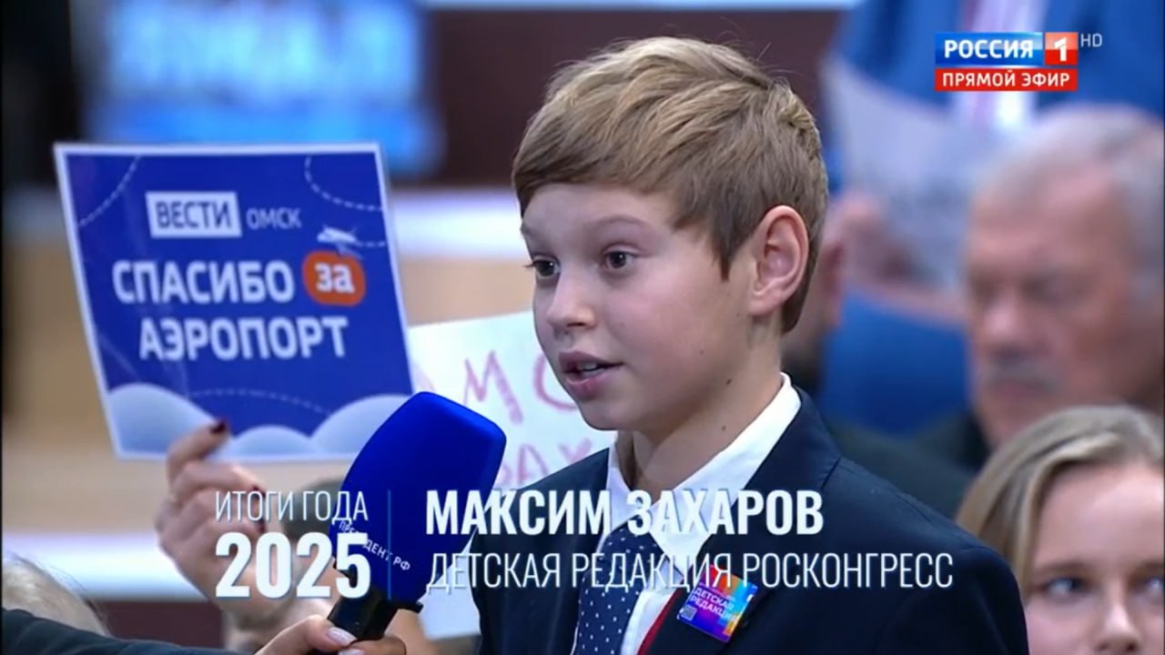 Вопрос от 13-летнего корреспондента молодежного медиа "Детская редакция" Максима Захарова