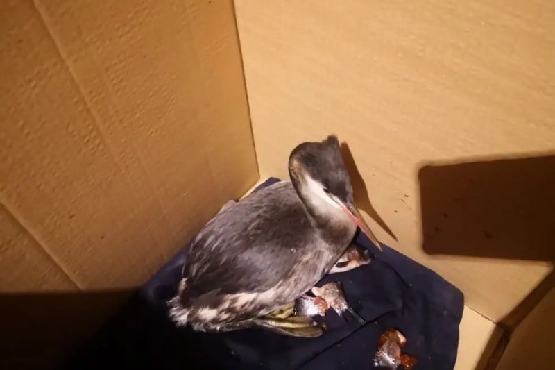 Выяснилось, что спасённая чомга — молодой птенец со сломанным крылом. Из-за травмы и сильного истощения птица была особенно уязвима в условиях холодной погоды.