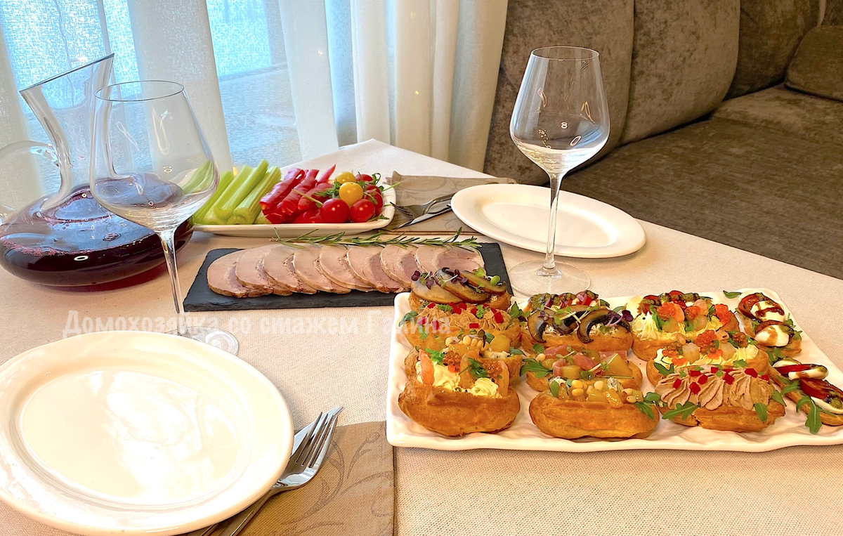 - Креветки и красная икра: Идеальное сочетание для любителей морепродуктов. Нежные эклеры, наполненные жареными креветками, творожным сыром с авокадо и щедрой порцией красной икры, создают эффектный и лакомый кусочек для закуски.