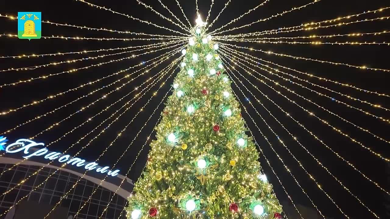 Вслед за главной городской ёлкой новогодние огни зажгли и у дворца спорта «Кристалл»