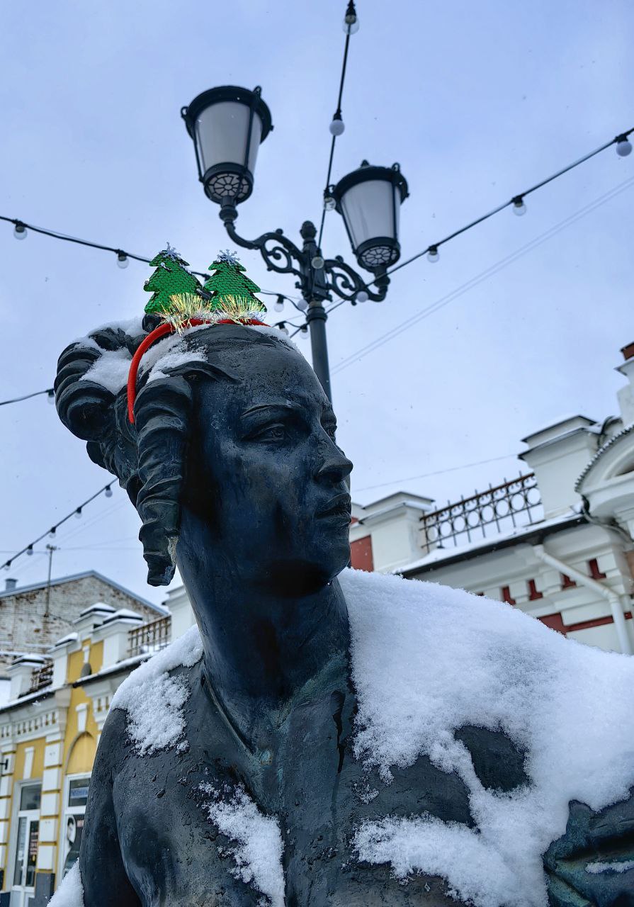 Скульптурные персонажи, разместившиеся минувшей осенью на тамбовском Арбате, снова украсили новогодней символикой. Соответствующие фото разместил у себя в телеграм-канале советник главы Тамбовской области Антон Смертин.