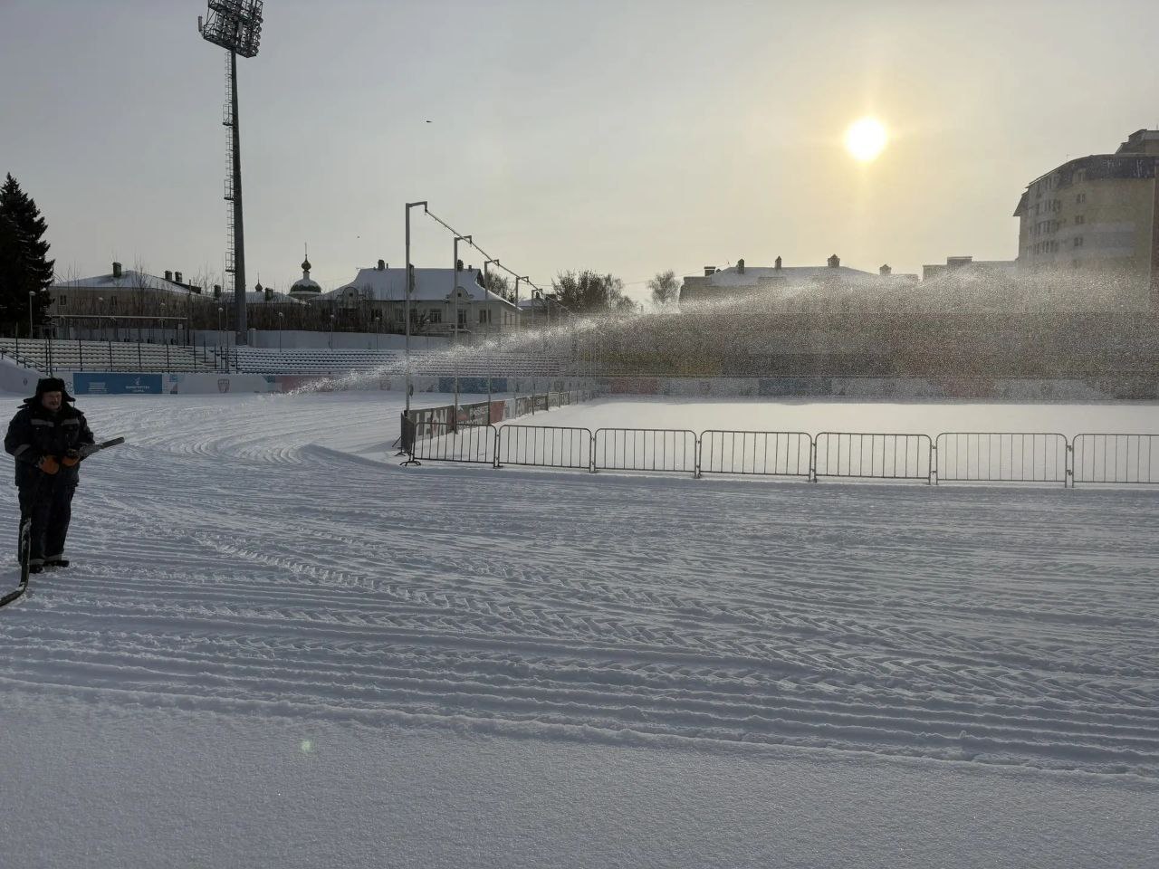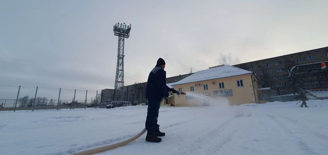 На стадионе "Спартак" в Тамбове" заливают каток