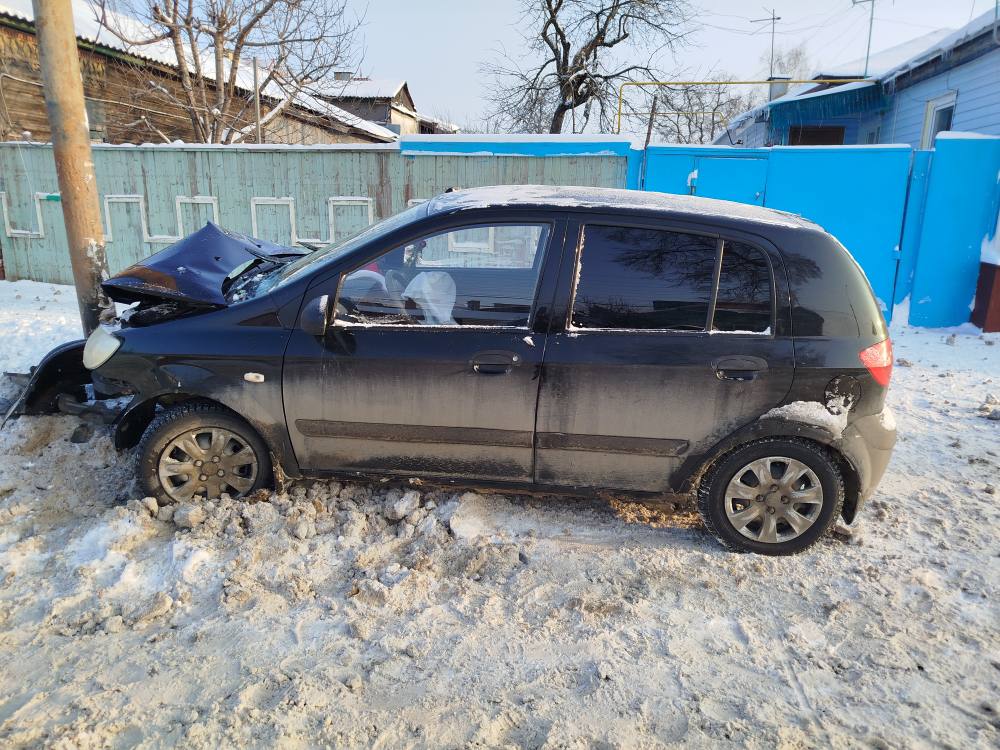 В Тамбове в первый день нового года водитель «Hyundai Getz» врезалась в столб