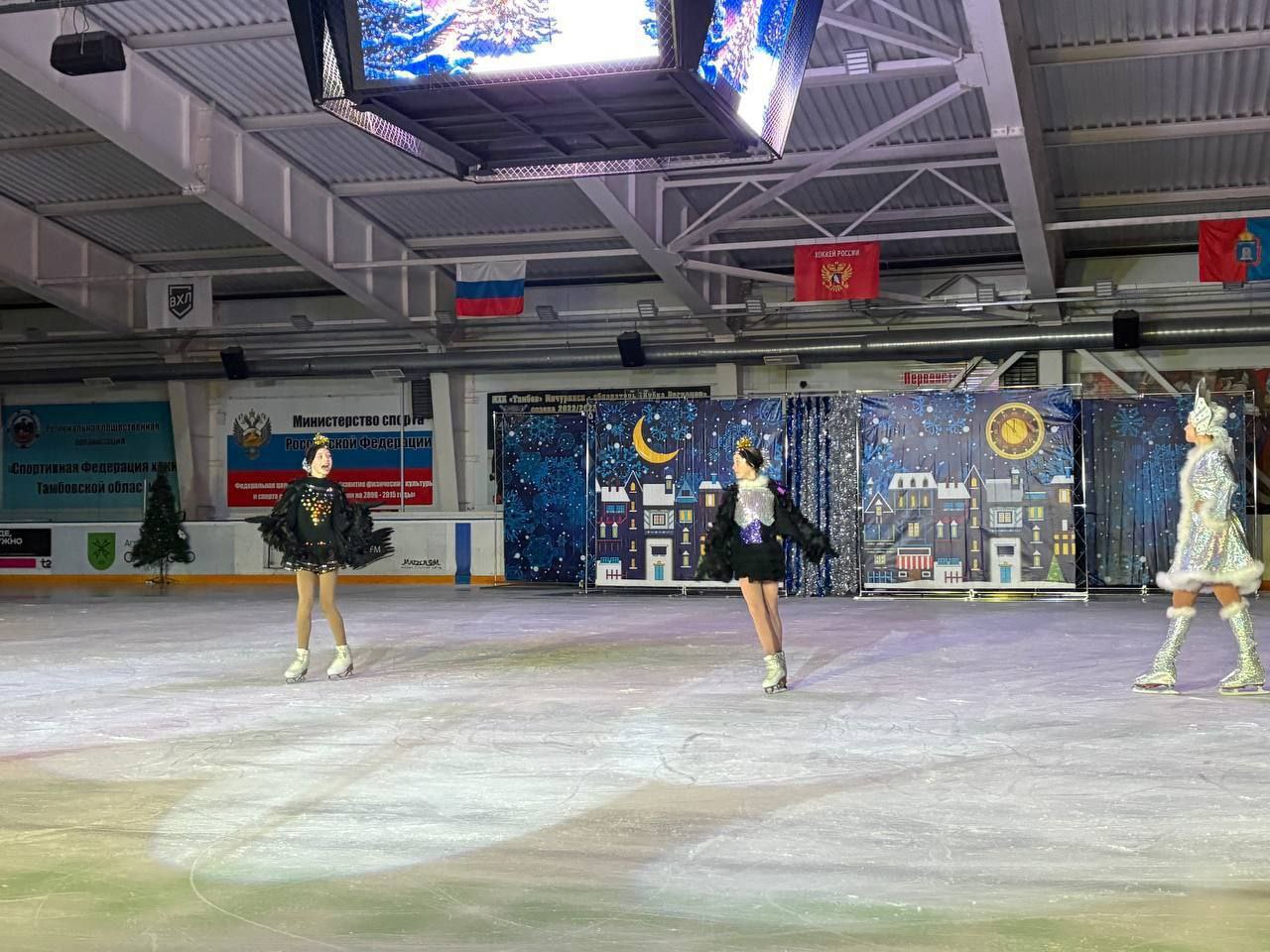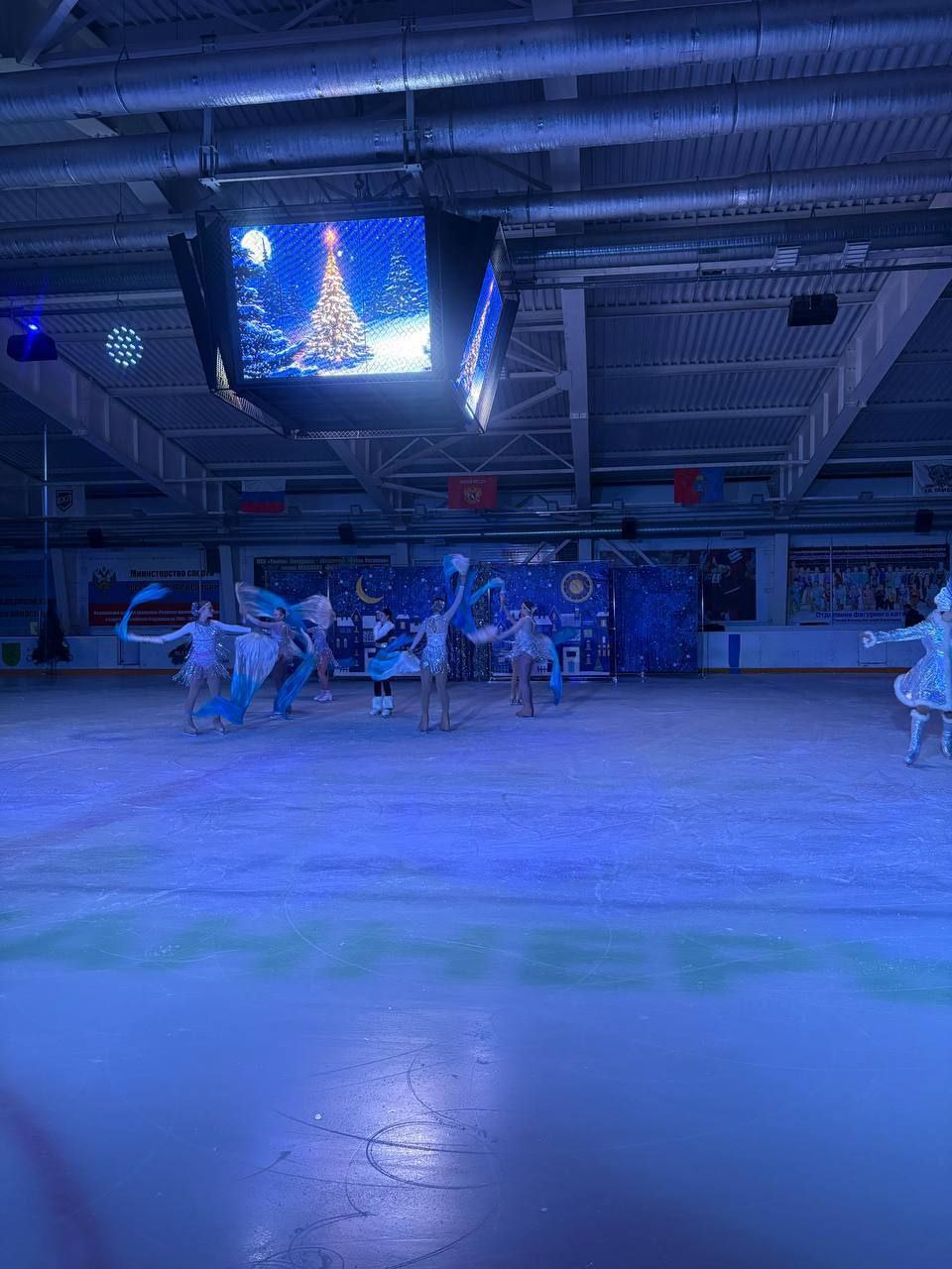 На Ледовой арене «В Радужном» воспитанники отделения фигурного катания спортивной школы №3 представили новогоднее ледовое шоу «Пока часы двенадцать бьют» (6+)