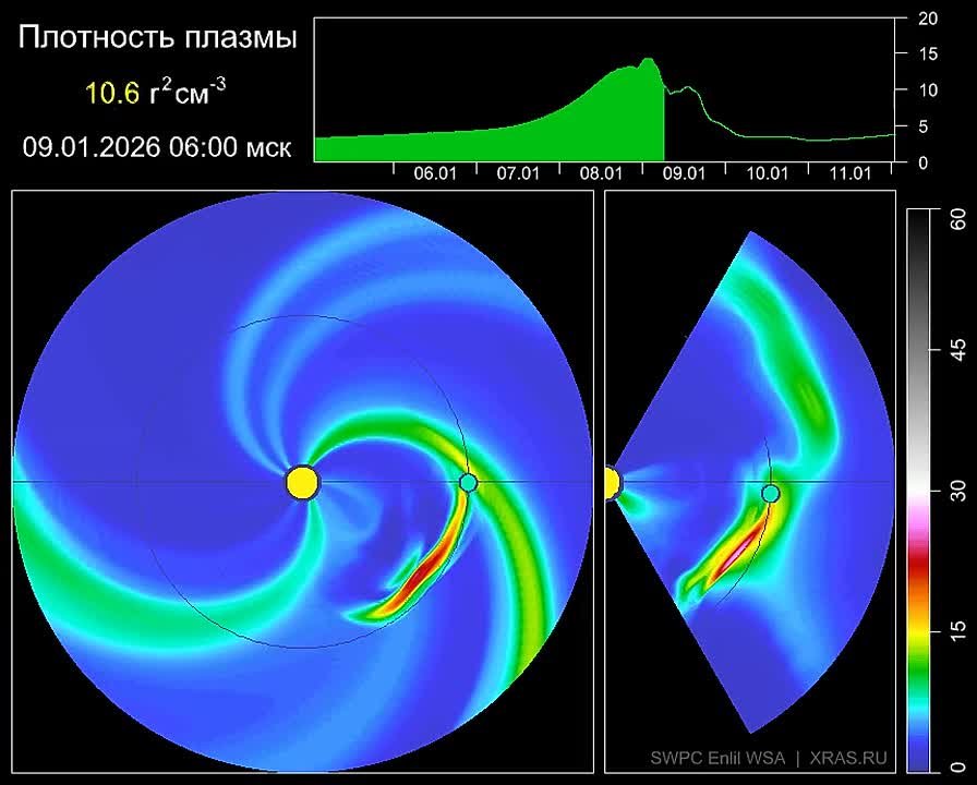 Об этом сообщили в лаборатории солнечной астрономии ИКИ РАН и ИСЗФ СО РАН. Прогноз является неустойчивым из-за "сильного смещения плазменного облака вбок".