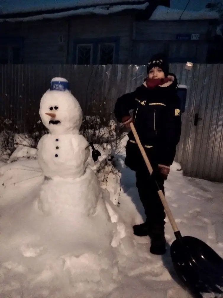 Один из отрядов волонтеров помог мужчинеинвалиду: расчистили снег и слепили во дворе снеговика.