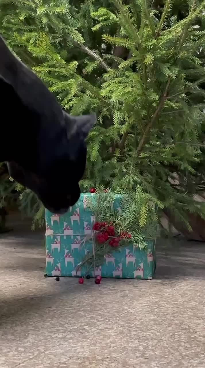 Зоолог спрятал угощения в крафтовые коробки и пакеты, украсив их еловыми ветками и гроздьями рябины. Но хищникам, конечно, важнее начинка.