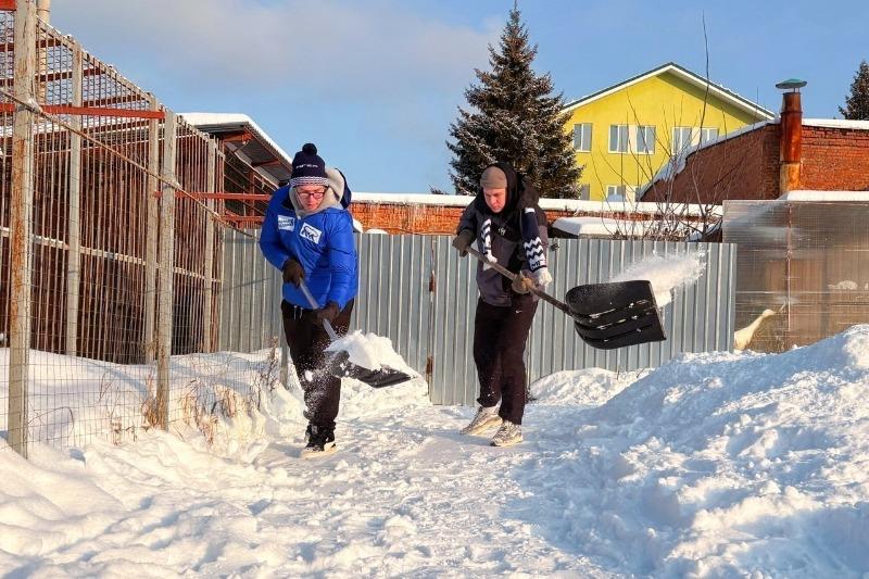 Добровольцы расчистили пешеходные зоны и проходы вдоль вольеров. Также они пообщались с подопечными приюта.