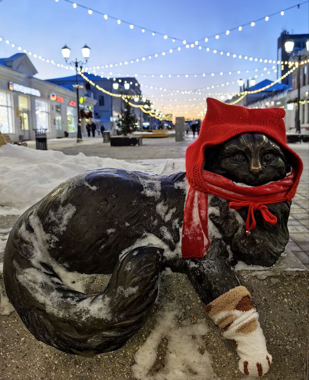 Тамбовский кот дополнительно утеплился перед крещенскими морозами