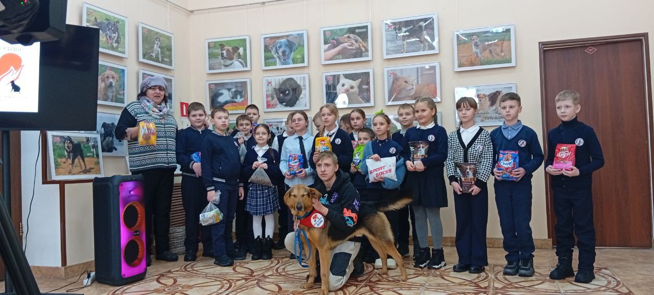 В открытии выставки приняли участие ученики школы №35. Многие ребята принесли корм, который оставили в специальной корзине в фойе. Он будет передан в приют «Доброе сердце».