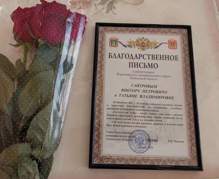 Супруги Виктор и Татьяна Гайтровы из деревни Иванжитово Первомайского округа отметили 50-летие совместной жизни. Юбиляры сыграли свадьбу в январе 1976 года. Пара воспитала дочерей Светлану и Татьяну, а также сына Геннадия. У Гайтровых одна внучка и три внука. Один из внуков участвует в СВО. Внуки подарили бабушке и дедушке трёх правнучек.