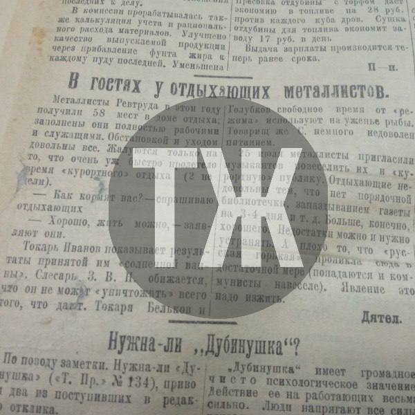Больше полусотни металлистов «Ревтруда» получили путевки в Дом отдыха. Многие из них проведенным здесь временем остались довольны. Рабочие ели сытно, укрепляли здоровье, повышали кругозор, читая книги и журналы. По вечерам можно было поудить рыбу. Администрация Дома отдыха, между тем, взывает к совести мужчин. Избавившись от надзора жен, они принялись активно употреблять «горькую» — по поводу, но чаще всего без него.