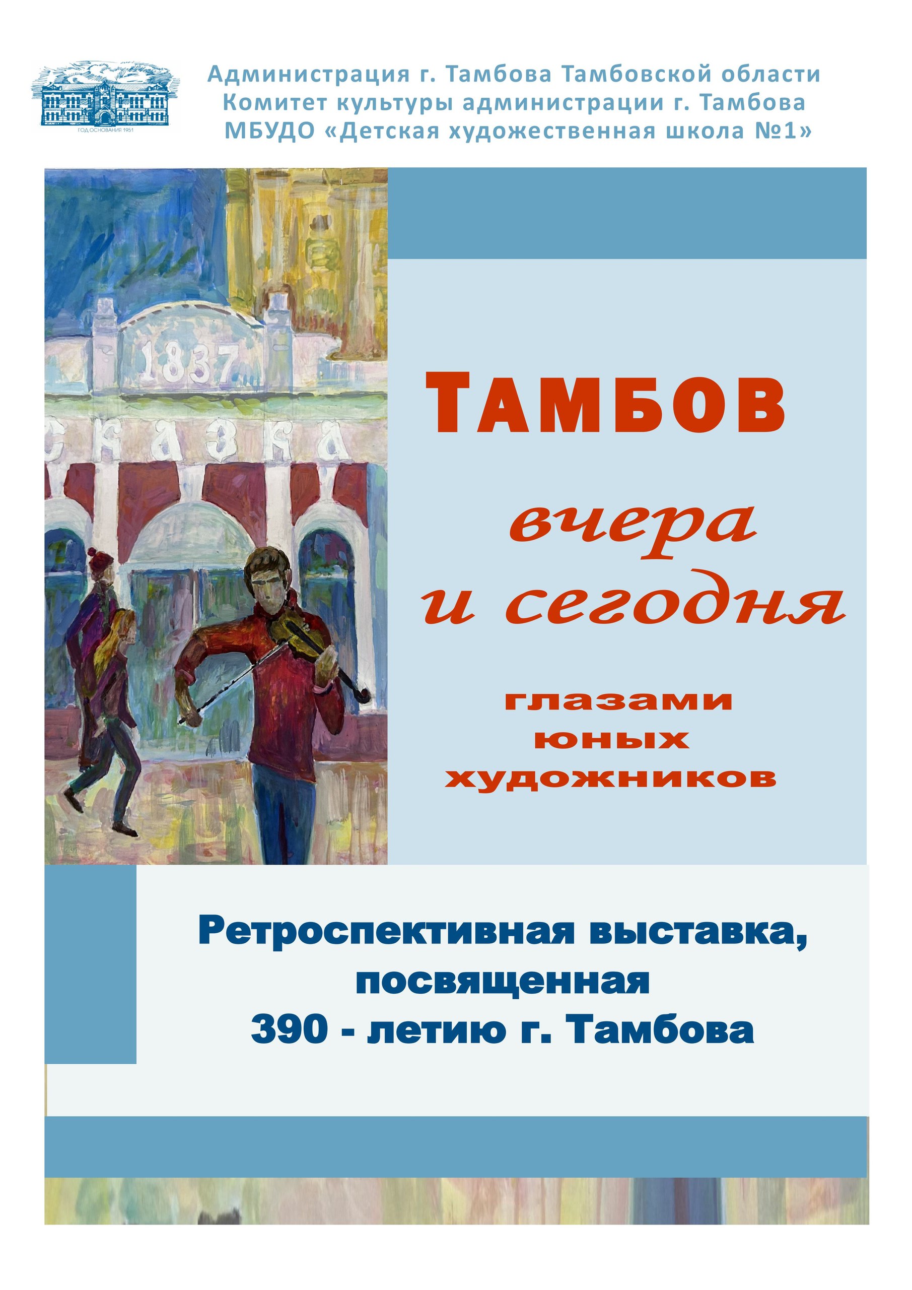 2026 год - юбилейный для нашего города. Тамбов отмечает своё 390-летие. К этому знаменательному событию приурочена специальная выставка, организованная учащимися и выпускниками детской художественной школы №1. Она называется «Тамбов вчера и сегодня глазами юных художников».