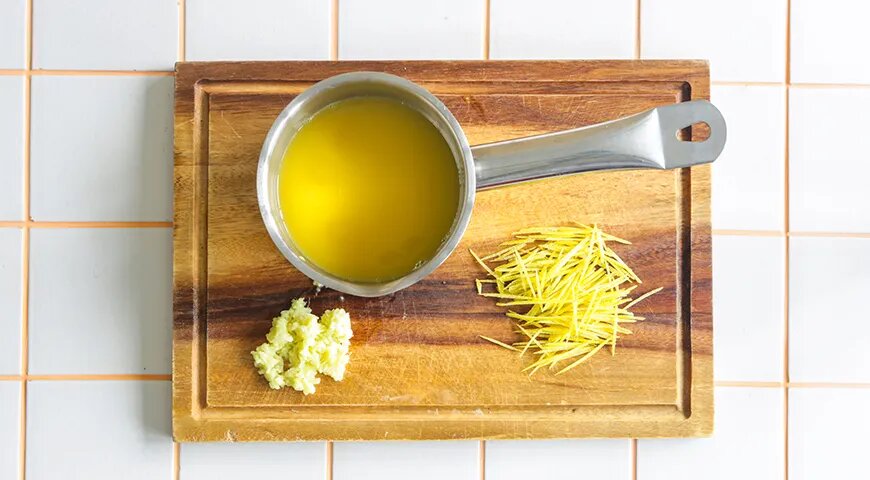 Начало вкусу задают ароматные акценты: лимонная цедра, имбирь и немного апельсинового сока — это те ноты, которые делают основу соуса живой и легкой. Крохотные зерна горчицы и горошины перца закрепляют характер, не давя на него слишком сильно.