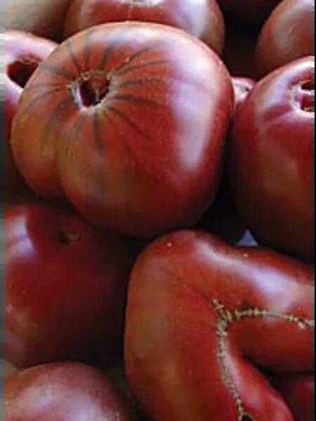 Плоды массой 120–150 г имеют кубовидную форму и темно-шоколадный цвет при полном созревании, что символизирует высокий уровень антоцианов. Мякоть мясистая и сочная, с небольшим количеством семян, что делает плоды удобными для нарезки, соков и соусов. Полное созревание на кусте раскрывает запах и сладость именно в их полном объеме.
