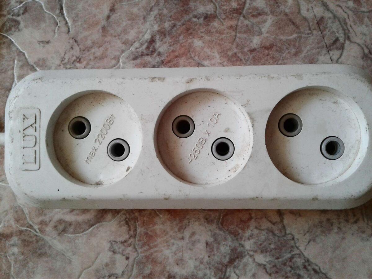 Проблема очевидна: грязь любит прятаться внутри гнёзд, где она мешает контакту и может стать источником неисправности. Чтобы всё прошло без риска, сначала отключите удлинитель от сети полностью и только затем приступайте к чистке корпуса.
