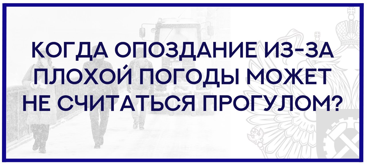 В связи с неблагоприятными погодными условиями на территории Тамбовской области, Государственная инспекция труда информирует, что опоздание на работу вследствие погодных условий может не являться прогулом, если оно вызвано объективными причинами, такими как чрезвычайные ситуации или природные явления, существенно затрудняющие своевременное прибытие сотрудника на рабочее место.