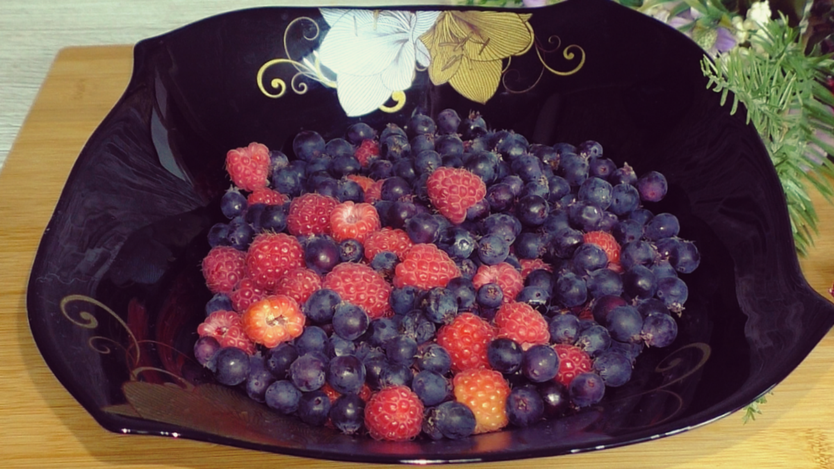 Для начала необходимо взять любые ягоды — например, иргу и малину, приблизительно 200 граммов. Их нужно поместить в дуршлаг и хорошенько промыть под холодной водой. Даже замороженные ягоды подойдут, просто не забудьте их предварительно разморозить.