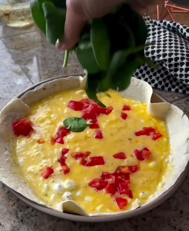 Лаваш-тортилья, 3 яйца, упаковка зерненого творога, томаты, шпинат, сыр. В духовке приготовится примерно за 20-25 минут при 180°.Подписаться на Новый век|Telegram|MAX|