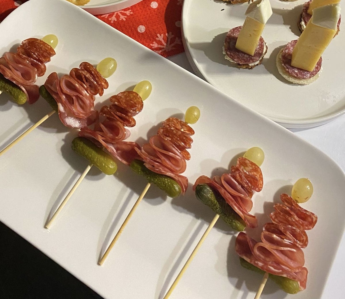 Разложите готовые закусочные ёлочки на красивом подносе или тарелке. Эстетическая подача привлечет внимание и порадует ваших гостей.