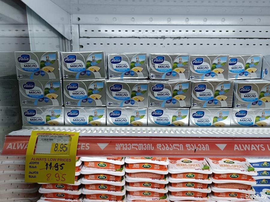 Что касается сливочного масла, то в Грузии можно найти как местное, так и импортное. Цены варьируются от 2–3 лари за спред до 13–15 лари за качественное масло в упаковке по 200 граммов.