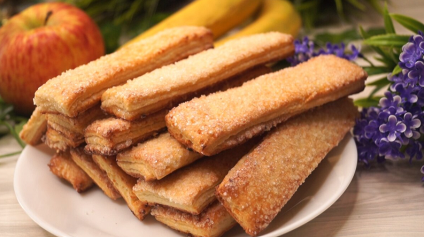 После нарезки печенья на прямоугольники, их выкладывают на противень с бумагой для выпечки и готовят в разогретой до 210 градусов духовке в течение 10-15 минут. Это обеспечит хрустящую корочку и слои внутри. Приятного аппетита!