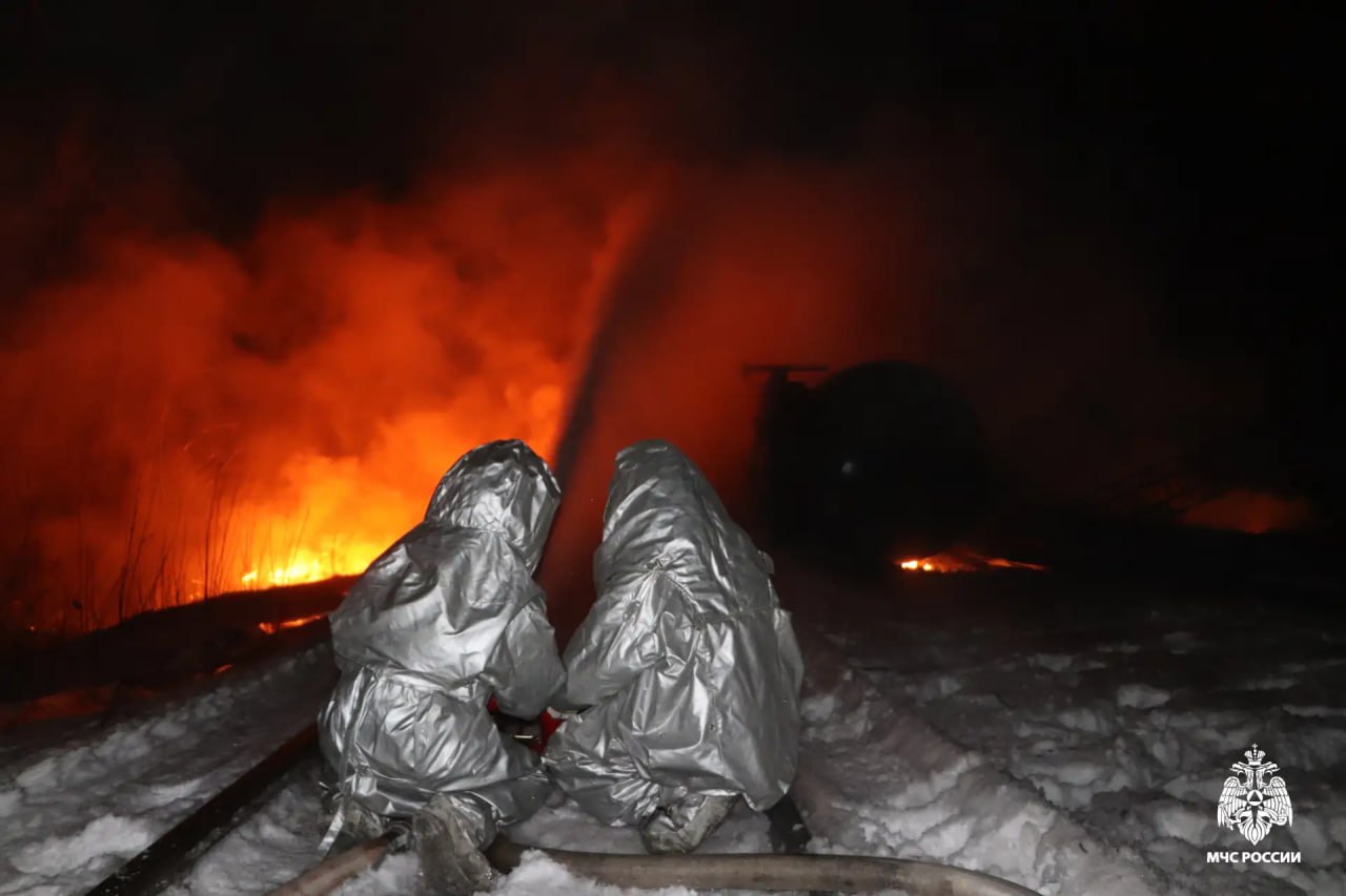Сотрудники МЧС продолжают ликвидировать возгорание на ж/д станции Кочетовка в Мичуринске
