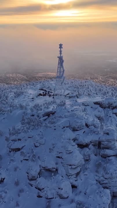 Захватывающие виды горы Полюд в Пермском крае с высоты птичьего полёта. Силуэт горы издали напоминает застывшую волну или каменный пьедестал. Издавна Полюд служила сторожевым постом, где зажигали сигнальные костры, предупреждая ближайшее селение Чердынь об опасности.