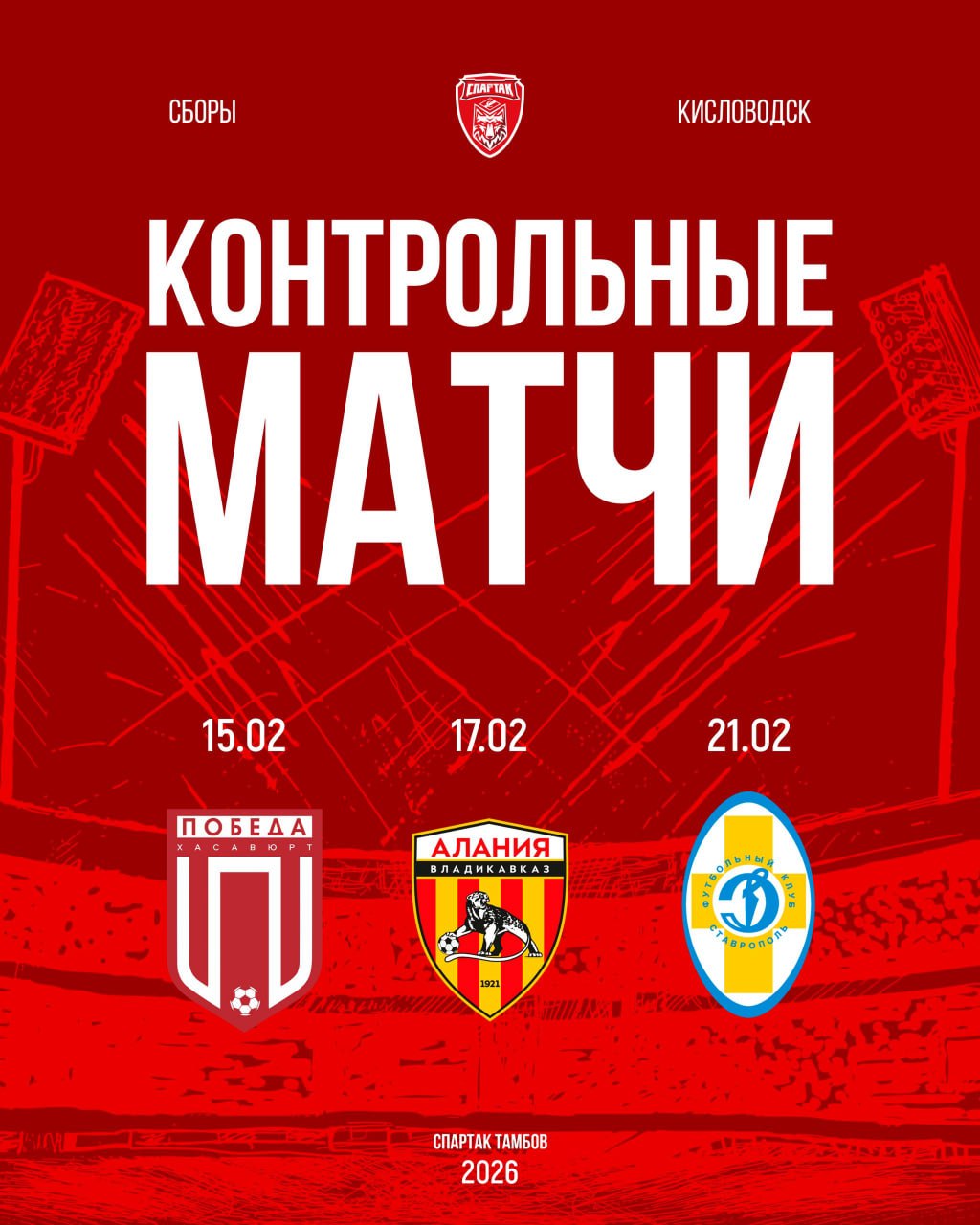 15.02 — «Победа» (Хасавюрт), 17.02 — «Алания» (Владикавказ), 21.02 — «Динамо Ставрополь».