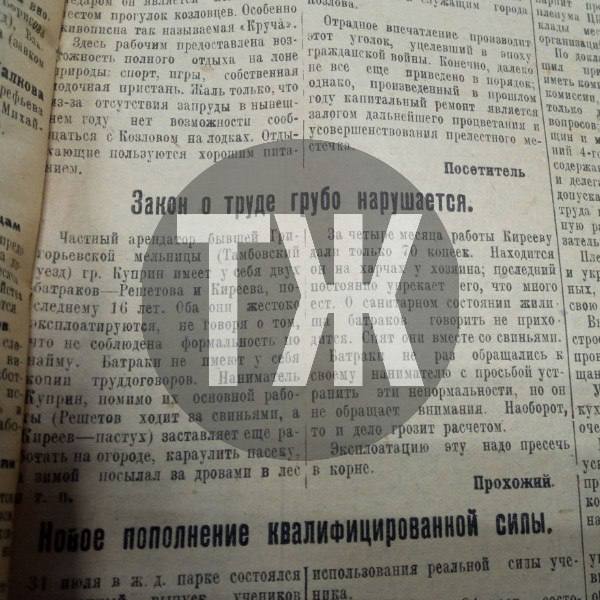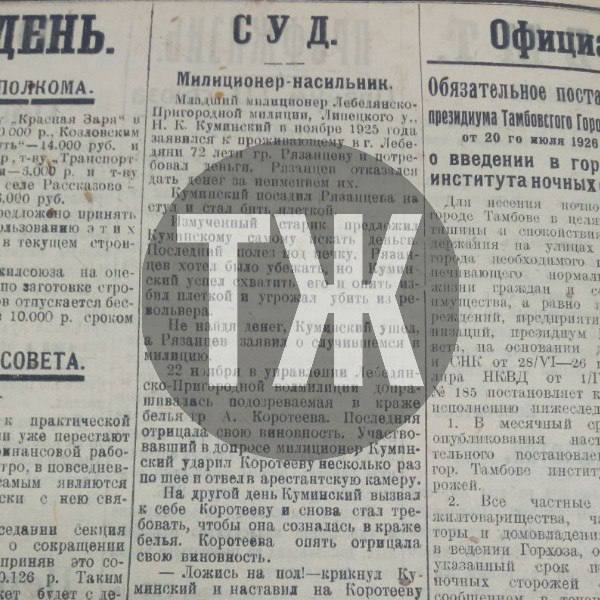 О злостном нарушителе трудового законодательства, пожарах, охвативших губернию, и милиционере-насильнике "Тамбовская правда" писала сто лет назад.