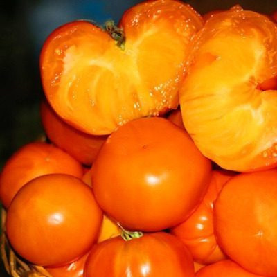 Растение имеет мощный куст с вытянутыми междоузлиями и крупными листами. Плоды, достигающие 200-400 граммов, имеют плоскоокруглую форму и могут удивить своим сладким, почти десертным вкусом. Полностью зрелые томаты окрашиваются в насыщенный апельсиново-рыжий цвет, который свидетельствует о высоком содержании каротиноидов.
