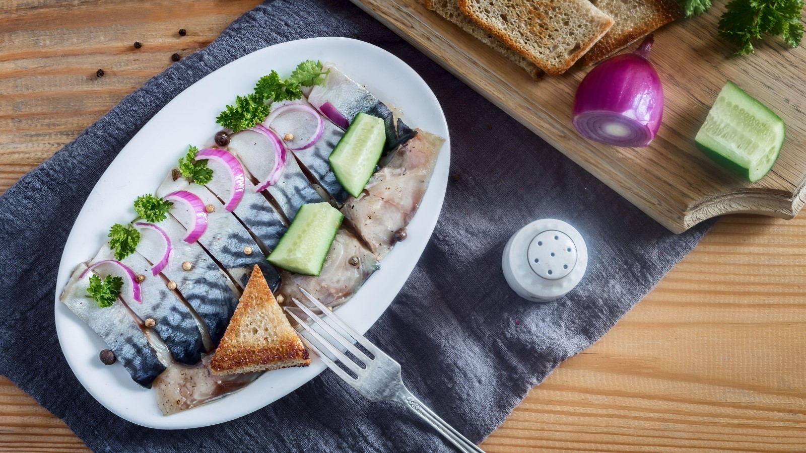 Накройте емкость крышкой или пищевой пленкой и поставьте в холодильник на ночь. Через 10 часов скумбрия будет полностью готова к подаче на стол. Надо только очистить ее излишка специй, заправить растительным маслом и посыпать тонкими кольцами лука, уверяет автор YouTube-канала «Готовить просто с Нелей Королевой», пишет Городовой.