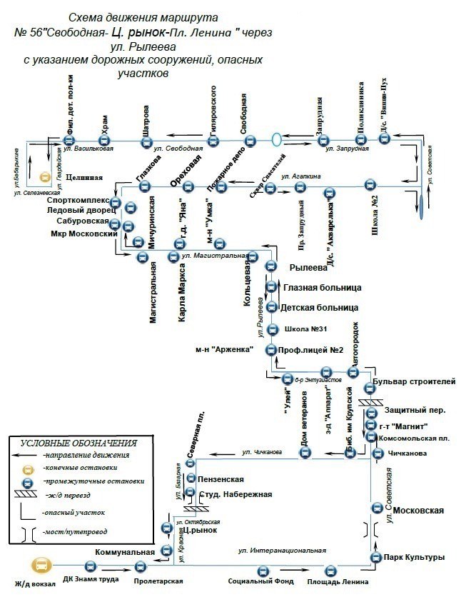 По обновлённому маршруту движение будет проходить от улицы Гвардейской до железнодорожного вокзала по улицам Селезнёвская, Бабарыкина, Васильковая, Свободная, Запрудная, Советская, Агапкина, Мичуринская, Магистральная, Рылеева, бульвар Энтузиастов, Советская, Чичканова, Базарная, Октябрьская, Красная и Интернациональная.