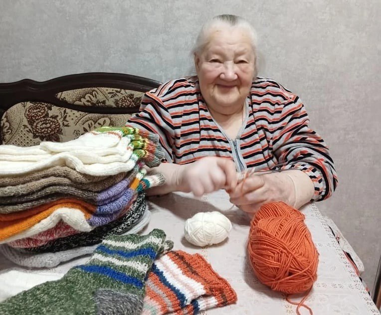 Нине Михайловне Редькиной из села Староклёнское Первомайского округа 86 лет. На спицах без труда пенсионерка вяжет шарфы, варежки, тапочки и носки. Когда началась спецоперация, женщина не смогла остаться в стороне. Как сообщает сетевое издание “Вестник”, в СВО участвуют двое внуков Нины Михайловны. Она очень переживает за ребят, ждёт домой живыми и невредимыми.