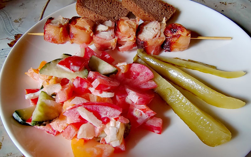 Это блюдо прекрасно подается с различными соусами или можно просто нарезать на кусочки, разместить на шпажках, дополнить свежим салатом и кислыми огурчиками.