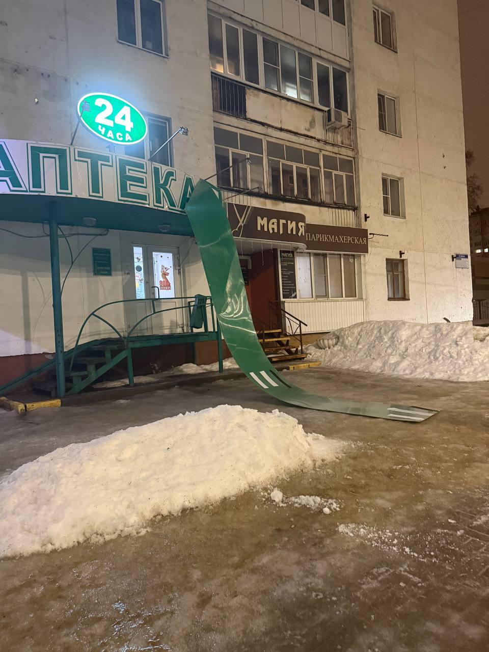 На Советской, в районе «Динамо», ветер сорвал вывеску аптеки