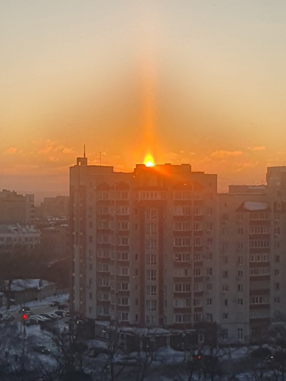 Солнечный столб "поймала" сегодня на рассвете наша подписчица Надежда Белякова